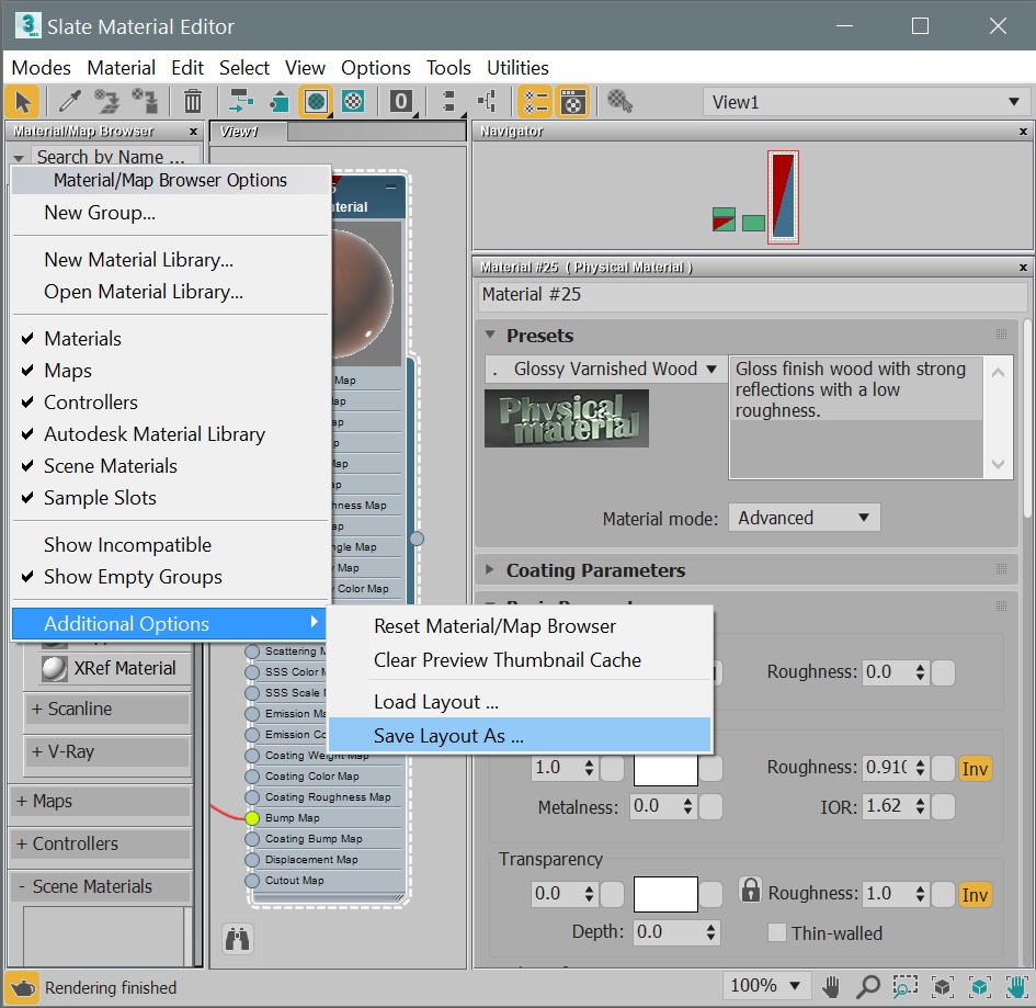 The controls to assign a renderer for the. The controls to assign a renderer for the. The material/map browser lets you choose a material or map. The slate material editor is a material editor interface that uses nodes and wiring to graphically display the structure of materials while you design and edit them. It is a comparatively small dialog with quick previews of various materials. (maps can also serve as environments and projections from lights.) the material editor is the dialog you use to create, alter, and apply the materials in your scene.